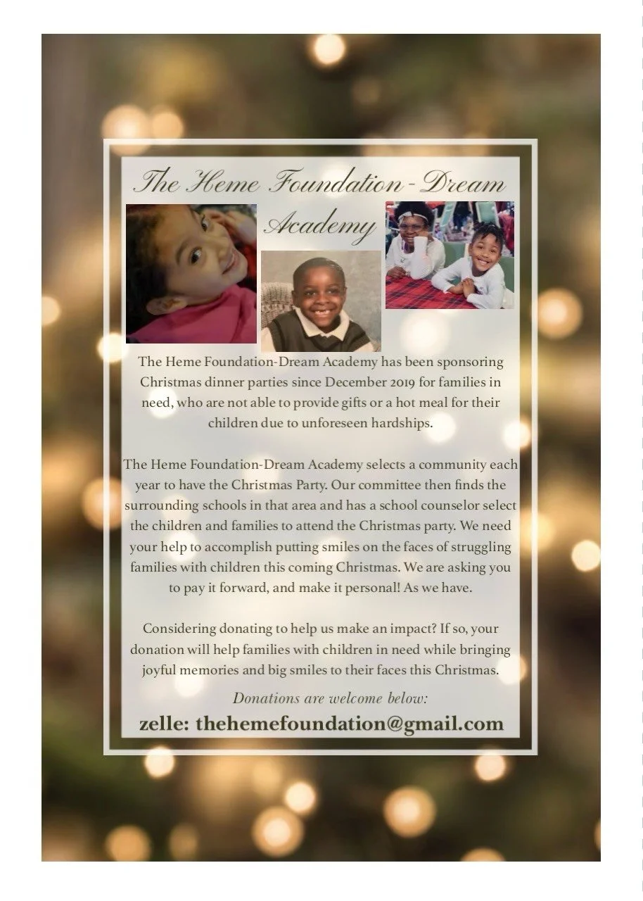Our non-profit organization, The HEME Foundation-Dream Academy, is dedicated to empowering women and children through community action by leveraging resources and expertise to support impactful initiatives.