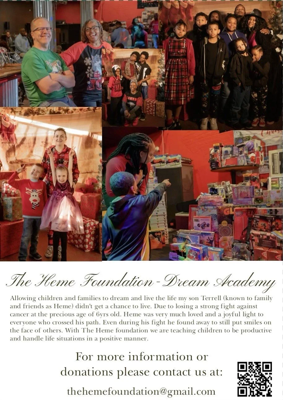 The HEME foundation selects a community each year to a have a Christmas Party. Our committee then finds the surrounding schools in that area and has a school counselor select the children and families to attend the Christmas Party. We serve hot meals and give gifts to children in those families who have unforeseen hardships.